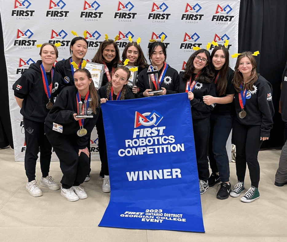 On March 5, 2023, HNMCS Robotics broke history. As one of three all-girls teams in Canada, the team stepped up into the spotlight representing girls globally. They left the event as winners and a two-time recipient of the Engineering Inspiration Award.
