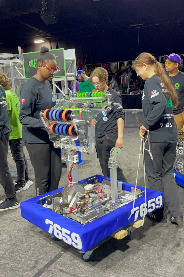 From April 4 – 6, 2024, HNMCS Robotics played at the Ontario Provincial Championship on the Technology Field. 100 teams were at the event and the event centre was full of energy! We met judges and teams from the McMaster and Centennial competitions again! At the event, we did the Engineering Inspiration presentation. On the field, the drive team showed a great performance! This was the first provincial event for the rookies. Rookies said that they had a great experience. Rookies were in all parts of the competition either as scouters, presenters, pit crew, and drive team!