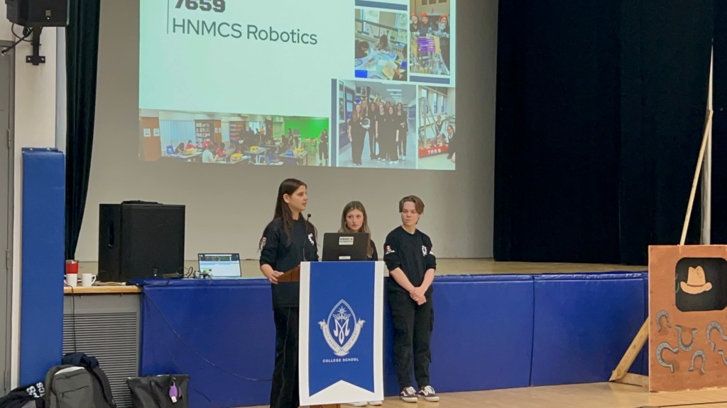 As part of CIS (Conference of Independent Schools), Holy Name of Mary College School hosted a curriculum leaders conference on May 13, 2024. This conference brought school leaders together to spend a day discussing innovative approaches to learning and think of new directions for independent schools. Embodying inspiration, creativity and strong minds, 7659 HNMCS Robotics upheld the opportunity to present to CIS representatives on behalf of Holy Name of Mary College School. Constructing innovation and discovery rooted in FIRST’s core principles, our team presenters accurately demonstrated the beyond-measurable achievements of our students through the development of skills such as teamwork, leadership, technical, and critical thinking. In addition to this, 7659 precisely communicated the progression of FIRST in the school curriculum through physics and computer science classes. Starring our 2024 competitive robot, Dancing Queen, administrators were amazed by the inspiration and inventiveness of robotics members.