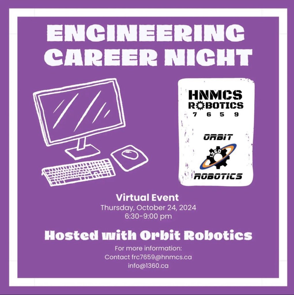 On October 24, 2024, HNMCS Robotics hosted its 8th annual Engineering Career Night with Orbit Robotics, attracting over 90 attendees eager to hear from six engineers. Three speakers were connected to the HNMCS community. Janice Bolen’s expertise has positioned her as a leader in optimizing resource use, Deshnee Naidoo, highlighted the challenges faced by women in male-dominated fields, and fellow alumnae, Victoria Meola, provided valuable advice for those considering graduate school. The evening, filled with valuable insights and networking opportunities, showcased the endless possibilities in the engineering profession. The common themes were to “embrace your strengths”, “network and collaborate”, and “pursue your passions”.