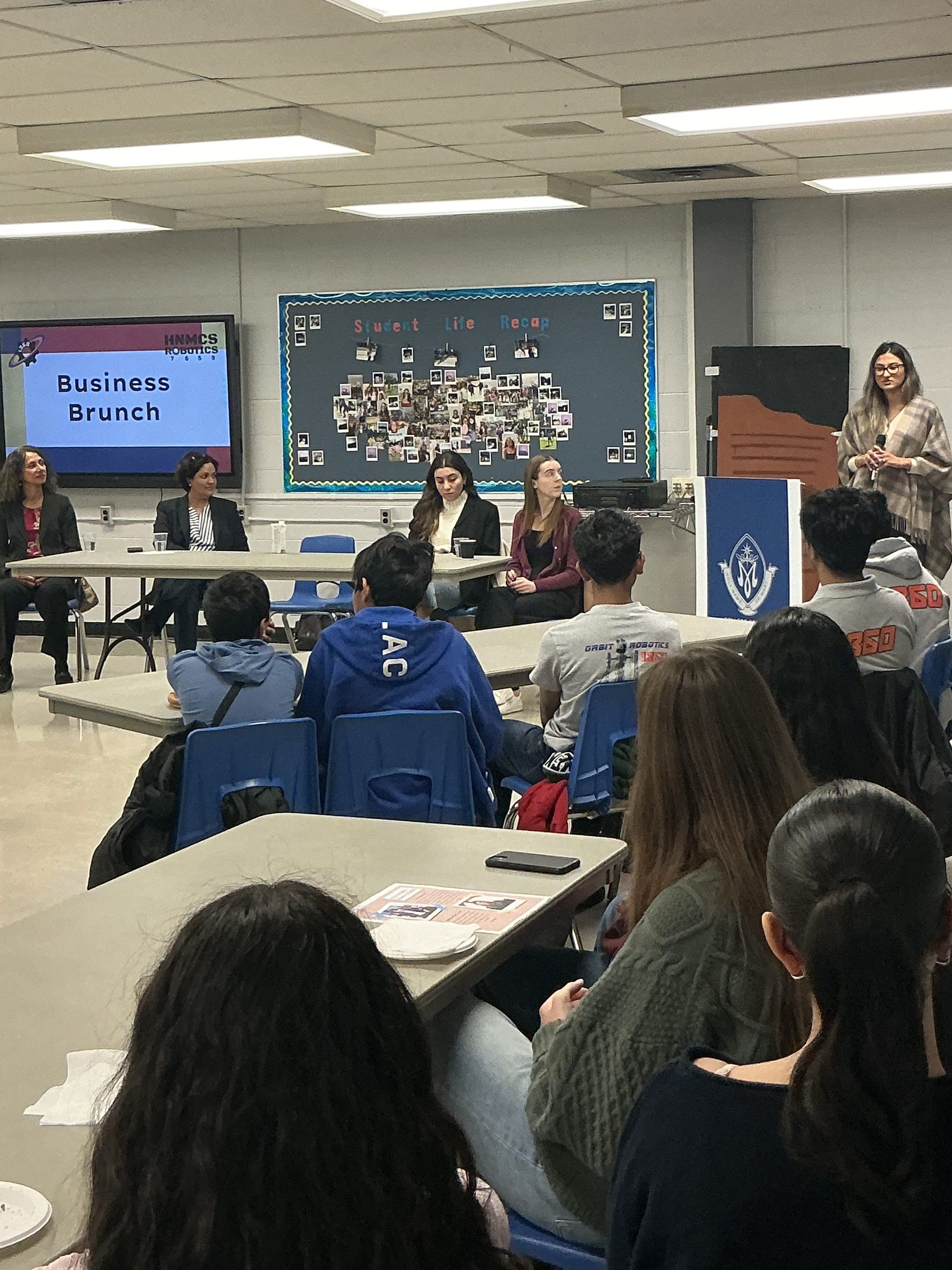 Last Saturday, November 16th, HNMCS Robotics and Orbit Robotics hosted the 8th Annual Business Brunch. Five guest speakers: Ms. Mendhi, Ms. De Sousa, Ms. Mann, Ms. Galle, and Ms. Bryson joined us. They shared their story in the business field and gave advice. Some advice from the speakers were “Don’t get too attached to what you have or want to be, you might miss other opportunities.” and “Just go for it.”