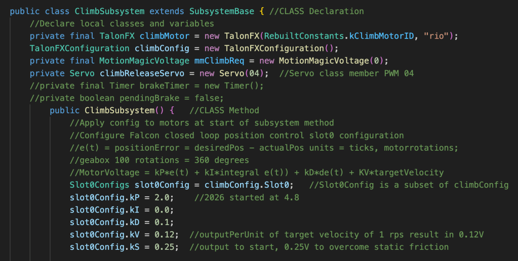 The team also worked on our climb mechanism by mounting a 1 Stage Climber in a Box and adjusting its dimensions based on the restrictions outlined in the FRC Game Manual. This became our ClimbSubsystem, which was then programmed by our coding team.